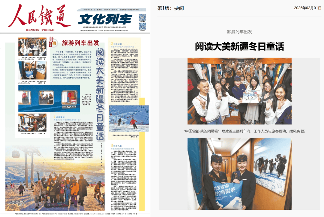 冬日新疆,千里冰封,万里雪飘。在这片被冰雪偏爱的土地上,一条条钢铁巨龙穿梭于戈壁雪原,将“人类滑雪起源地”的秘境、“中国雪都”的美景送达万千旅客眼前。便捷的铁路网让“畅玩冰雪,到新疆去”从一句邀约,变成触手可及的美好旅程。中国铁路乌鲁木齐局集团有限公司紧盯旅游市场开发,持续开好旅游列车和图定旅客列车,串联天山南北好风光,让“坐着火车游新疆冰雪”成为一种充满诗意的旅行方式。这个冬天,让我们以最从容的姿态,潜入辽阔静谧的大美新疆冰雪画卷。