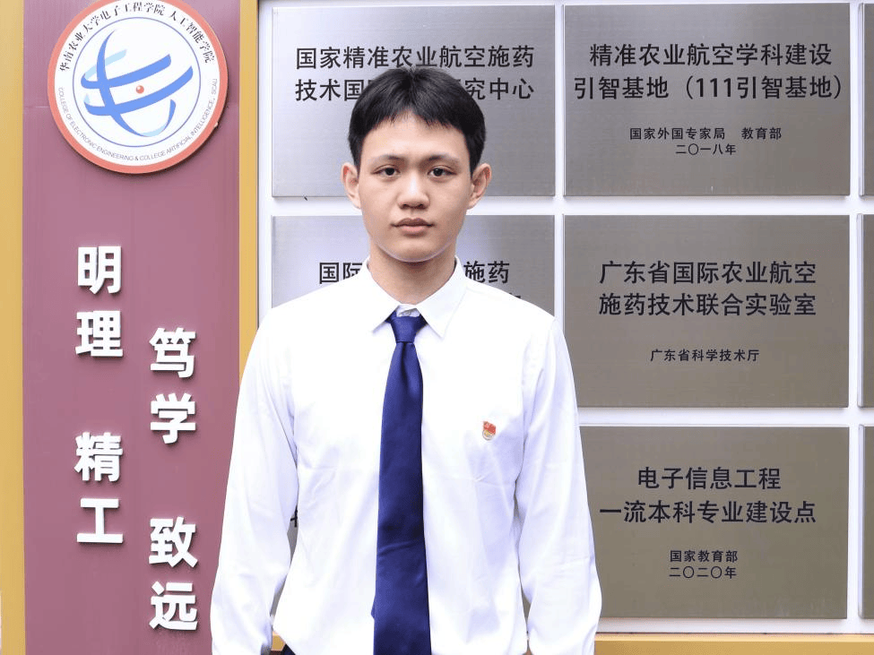 邓锦途,男,党员,2022级农业机械化及其自动化专业学生。曾任工程学院党建中心信息部部长、工程学院科技联合会科创部副部长。在校期间,荣获国家奖学金,“丁颖”奖学金,一等奖学金;2023-2024年度华南农业大学“优秀共青团员”称号;2024-2025年度华南农业大学“优秀共青团员”称号;2023年第20届全国大学生信息安全与对抗技术竞赛国家级一等奖;以第一作者发表北大核心期刊论文1篇,参与发表实用新型专利1项、软件著作权4项。现已推免至中山大学攻读硕士研究生学位。