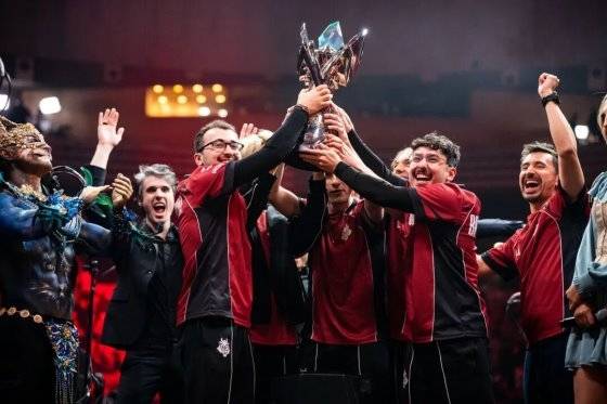 第五局 G2 知道必须在前期确立优势,凭借招牌冰鸟的压制力和游走,G2 在 13 分钟就取得了 3000 多的经济领先。但 KC 依靠希维尔和阿萝拉极其恐怖的清线能力,硬生生将比赛拖入了 50 分钟以后的超大后期,并在防守中多次惊险击退 G2 的高地推进。在这场令人窒息的拉锯战中,G2 最终利用兵线牵扯,兵不血刃地拿下“远古巨龙 + 大龙”的终极双龙汇。携带究极 Buff 的 G2 众人冲上高地,大树被远古龙直接斩杀,妮蔻完美进场控场,G2 彻底粉碎了 KC 的防线,成功拒绝了“让二追三”的奇迹,捧起总冠军奖杯!